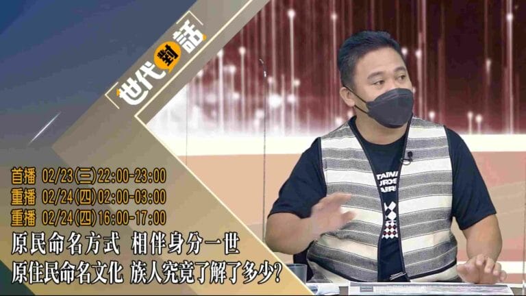 播出時間 首播:2/23(星期三)22:00-23:00重播:2/24(星期四)02:00-03:00重播:2/24(星期四)16:00-17:00 來賓 1. 苗栗縣原住民關懷協會 理事長:’itih...。