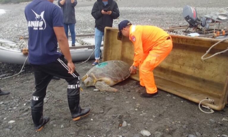 台東縣三和定置漁場3日上午進行收網工作時,竟發現有綠蠵龜誤入漁網,業者立即通報海巡單位,而經過測量海龜體長105公分、體寬95公分,已是一隻成年龜,符合野放的標準。