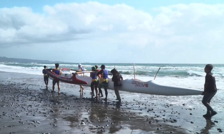 教文 生活 傳統 支架大洋舟 海域 海洋 航行 台東藍海生活節 夏威夷支架大洋舟航向都歷交流 74 支架大洋舟原訂22日清晨挑戰在台跨海長距離航行,從杉原灣航向都歷部落傳統海域約30公里,但因東部海岸海象、浪況不佳,象徵性的從都歷部落北邊出海,出航時,在大洋舟險象環生地划到海中。 2022-09-22 19:32