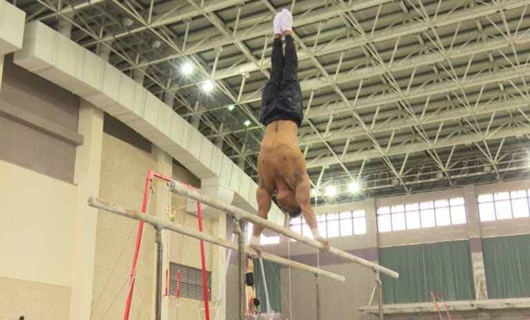 體育 台東大學 奧運 排灣族 游朝偉 選手 體操 讓體操在台東扎根!台東大學建立夥伴聯盟 透過系統性培體操選手 42 在場上流暢的空中反向轉體接槓,用雙手做出各種高難度單槓動作。 2021-12-22 15:50