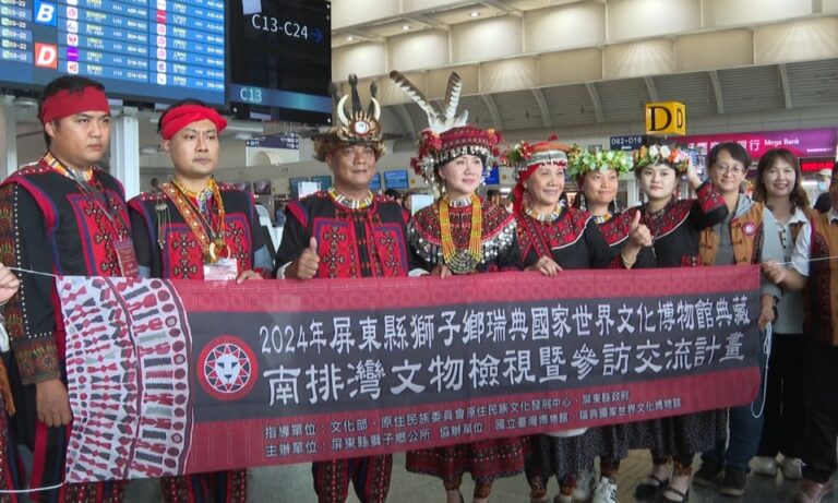 國際 南排灣族文物 獅子鄉公所文物調查研究暨參訪交流團 瑞典 追南排灣海外文物 獅子鄉公所組團赴瑞典 105 機場大廳中,身穿南排灣傳統族服的族人,就是準備前往瑞典與國家世界文化博物館,進行文物調查研究交流的獅子鄉公所文物調查研究暨參訪交流團。 2024-06-13 19:26