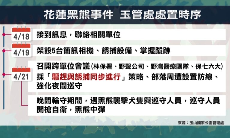 近日,花蓮卓溪鄉的黑熊事件引發熱議,玉山國家公園管理處、副處長邦卡兒說明,這並非首次黑熊出沒部落周邊,為了防患未然,保育工作重點已從物種存續,轉為降低人熊衝突,玉管處也與民間保育協會簽約,訂定黑熊救傷的合作模式。
