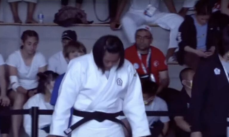 身穿白色隊服的是魯凱族柔道選手王桀曦,在2022年世界中學生運動會女子組70公斤以上級的柔道比賽鐘,一路過關斬將,先是擊敗土耳其及巴西選手,來到金牌之戰對上中國選手,一開始王桀曦有些施展不開,一度陷入危機遭對方反摔。