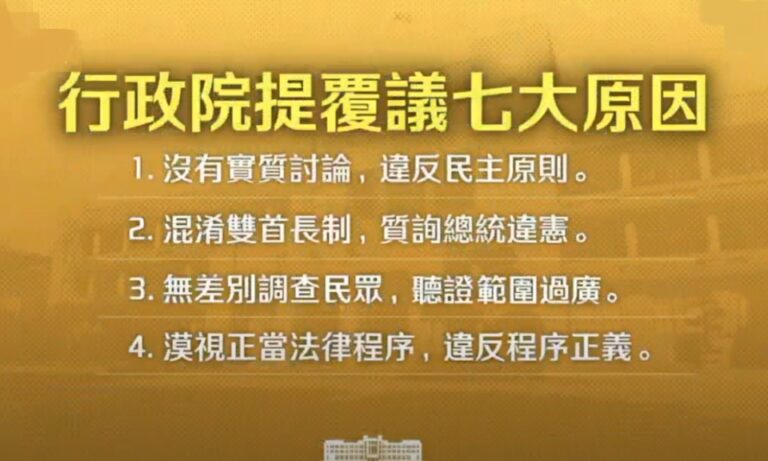 政經 立法院職權行使法 國會改革法立院三讀! 行政院提覆議列7理由「窒礙難行」 616 立法院會5月28日三讀修正通過「立法院職權行使法」、「刑法」部分條文等案,相關函文5日送到行政院,對此,行政院邀集學者專家、審視條文,經研議討論後,行政院在6日提出七大原因,認定國會改革法案窒礙難行,依憲法增修條文,提請覆議。 2024-06-06 19:12