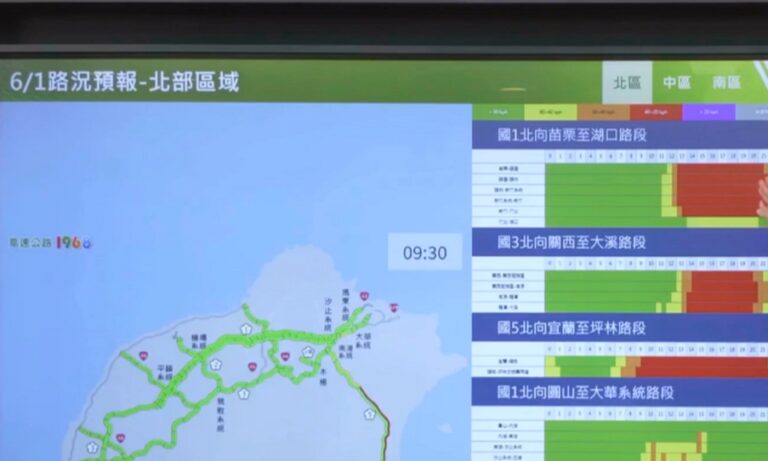 國道路況預報員 游衣芸:「截至下午的三點,國道全線交通量約為54.8百萬車公里,高公局預估本日的交通量會到達111百萬超公里。