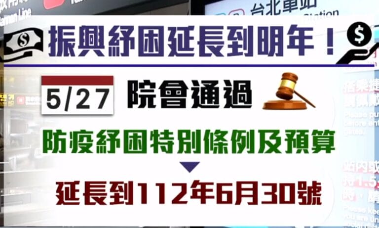 政經 生活 振興 民生 疫情 立法院 紓困 行政院 紓困振興特別條例延長一年 政院拍板新一波振興方案 553 立法院長游錫堃:「請問院會對以上協商結論有沒有異議?好,沒有異議本案做如下決議:本案同意延長嚴重特殊傳染性肺炎,防治及紓困振興特別條例及其特別預算施行期間至112年6月30日。 2022-05-27 19:41