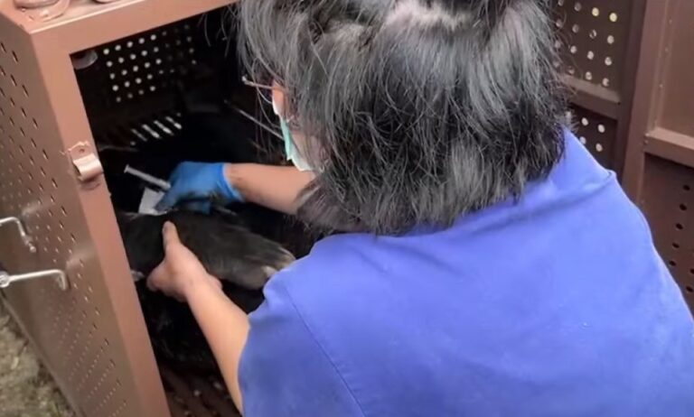 兩名員警合力將柵欄鎖上,並且在距離500公尺的路口放下車輛改道的路牌,指示民眾禁止通行高寮便道。