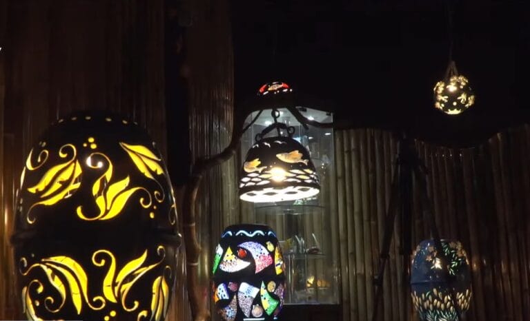 原鄉 教文 成果展 海洋廢棄物 環保 藍洋綠藝創作坊 藝術 漁業浮球變成美麗飾品 成功海廢創作課秀成果 393 漁業浮筒經過學員們裁切與鑲嵌,塔配線材及海邊的貝殼,化身為變幻的形體,藉由光影後成為浪漫花海的燈飾。 2022-05-12 13:25