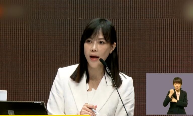 朱素貞教授一身白色洋裝,身上背的就是她的編織作品月桃柏金包,她這次共展出了20款作品,所使用的材料包括月桃葉鞘、印有豹紋的呢絨布,以及壓製鱷魚皮等不同紋路的塑料等多元材質,所有創作沒有使用一針一線,全部手工編製完成,希望透過編織創作來探討時尚、藝術、環保的關係。