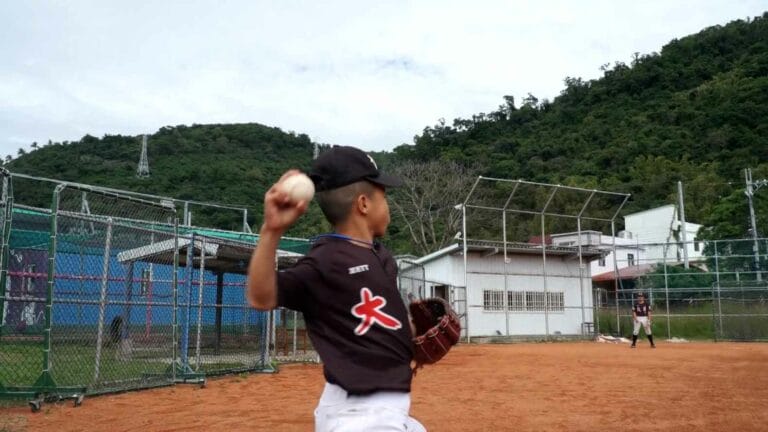 小球員認真進行傳接球訓練,這是台東縣南迴地區唯一有少棒隊的大溪國小,今年在25屆傳福盃拿下軟式組金牌,更是學校首座全國賽獎盃,不過,台東南迴地區,運動資源有限,許多小球員球具用到破損了還在使用,多良村長跟善心人士合資,特別購買棒球裝備,捐贈給大溪國小。