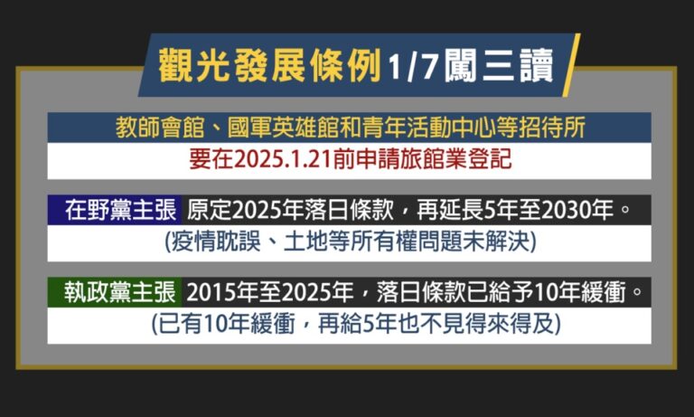 政經 土地承租問題 復興青年活動中心 觀光發展條例 「觀光發展條例」修法 延長特定旅宿落日條款 152 溫煦陽光、氣溫合宜、依山傍水,讓不少民眾願意出來走走,不過復興山區要讓遊客進來,光有美景還不夠,住宿也是一大考驗。 2025-01-04 19:12