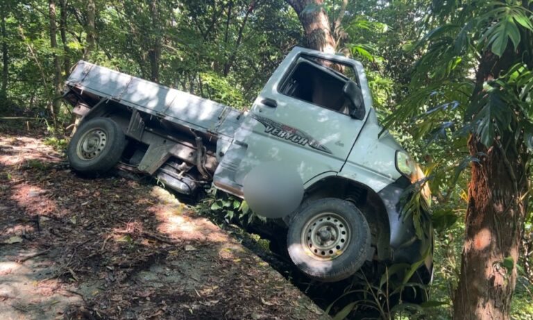 台東小貨車失控衝山谷半懸空 駕駛受困獲救