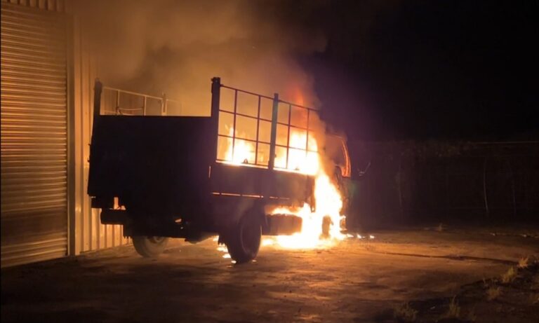 生活 台東 貨車起火 台東深夜巷內驚傳爆炸聲 烈焰吞噬大貨車 15 20日深夜11點多,一台停放在台東市大勇路倉庫前的藍色大貨車突然竄出火光,火勢伴隨黑煙迅速延燒,烈焰火舌幾乎吞沒大貨車,爆炸聲也嚇壞了附近居民。 2023-08-21 19:02