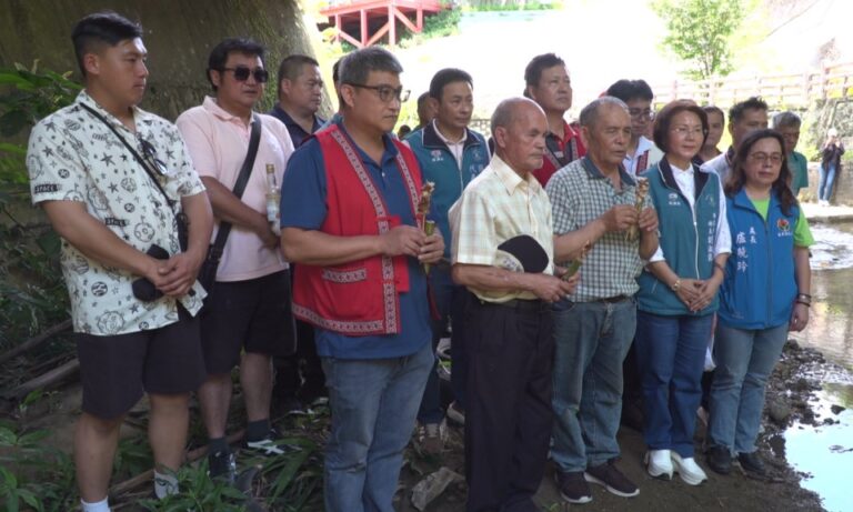 祭典活動 淨溪祭 百壽部落 賽夏族傳統祭典 復振賽夏傳統祭儀 苗栗百壽部落辦淨溪祭 78 苗栗獅潭鄉百壽部落耆老,手上拿著祭祀用的供品,一起來到百壽公園下方野溪,祭祀河神也祭祀山神,賽夏族淨溪祭起源於古老的神話故事與傳說,但最終目的就是要讓族人懂得敬畏大地,保護滋養生命的山川河流。 2025-05-20 19:35