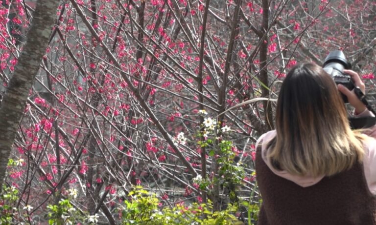 南投仁愛鄉每到櫻花盛開季節,不論是在一般的道路上,還是在各個景點,就會有民眾拿著手機或照相機,拍下火紅綻放的櫻花來留念,如果再透過社群軟體發布出去,也會引來許多網友點讚分享,可見花開的魅力,是大多數人所嚮往。