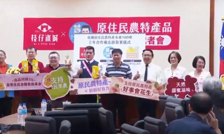 為了推廣原住民特色農特產品,立委黃仁邀集食品加工大廠,跟台東原鄉農友簽訂-原住民族農特產品產銷合作備忘錄,發展創新獨特的旅遊伴手禮。
