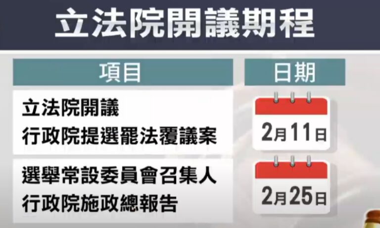 立法院即將迎接新的會期,藍綠白三黨幹部,6日下午進行黨團協商,針對立法院開議日期、常設委員會召集人、行政院提選罷法覆議案等事項進行討論;而國民黨團總召傅崐萁,提出2月11處理選罷法覆議案、2月25日行政院長卓榮泰,進行施政總報告並備詢,對此台灣民眾黨表示全力配合。