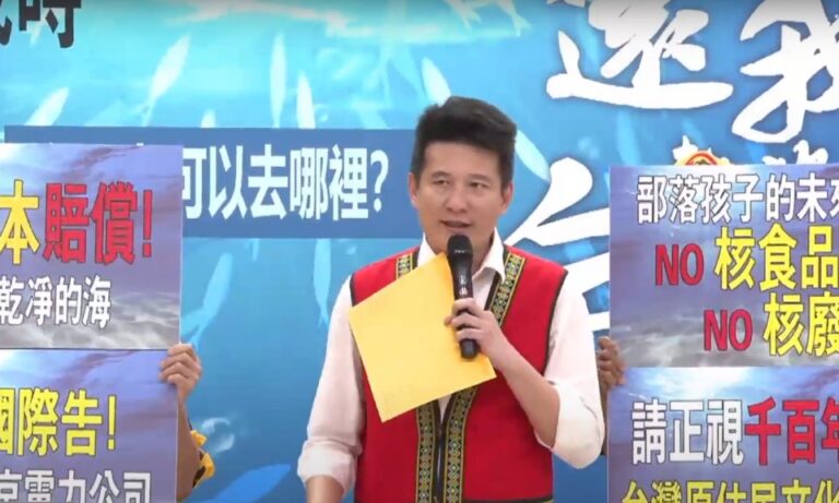 身穿族服齊身吶喊「還我乾淨海洋」,反對日本核廢水核食品,陳抗的原民團體表示,族人在海岸生活、捕撈、採集,已有上千年歷史,阿美族的捕魚祭、噶瑪蘭與撒奇萊雅的海祭,皆是對海洋的感恩與仰賴,陳抗團體反對日本政府漠視海洋聚落的生存,向祖靈與社會大眾表達訴求,要求日本停止排放核廢水。