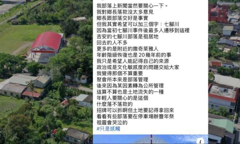 花蓮壽豐鄉Rinahem部落新建的聚會所,因招牌標註鄉長姓名引發族人討論;更有族人指出真正關心的並非名字本身,而是文化自主與土地認同的問題。