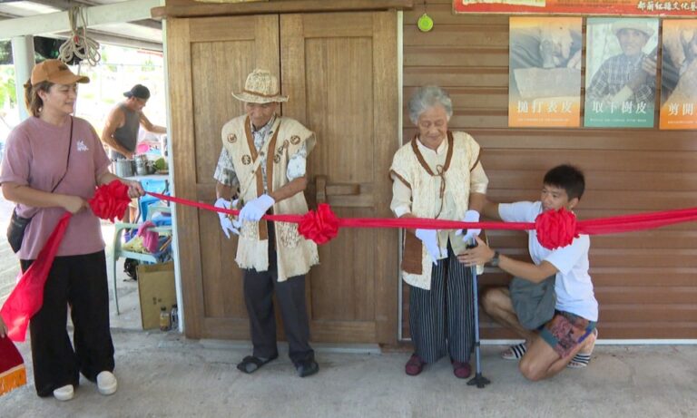 原鄉 環境 Panay沈太木耆老 身體在嘴巴前面 都蘭部落樹皮工坊 都蘭部落樹皮工坊開展 耆老復振傳統工藝 78 都蘭部落樹皮工坊開展,復振樹皮工藝推動者Panay沈太木耆老與夫人,親自舉行剪綵儀式,隨後與會的來賓也一起進入工坊參觀。 2024-06-19 12:25