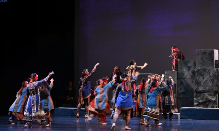 大社部落長者以歌謠獻上祝福,為長榮百合國小應屆畢業生的畢業展揭開序幕。