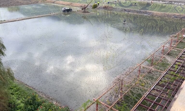 原鄉 環境 媽祖彩繪田 關山鎮 關山6色彩繪稻田「天后阺家」種進媽祖意象 25 工作人員彎著腰、踩著田埂,一塊一塊順著白線插秧,旗子插在哪、顏色就得對應到哪,一點都不能出錯。 2025-12-02 19:46