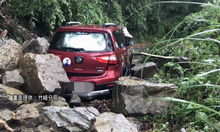 原鄉 生活 意外 落石 阿里山 雨勢大 大雨下不停 阿里山接連傳落石意外 145 大石重重砸在擋風玻璃上,車門也有明顯凹痕,畫面怵目驚心,另一處也有車輛,因被落石砸中,整台車動彈不得。 2022-05-26 19:48