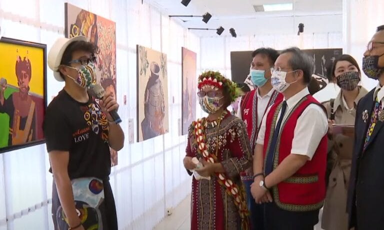 教文 生活 文化 畫展 雲豹隊文化藝術團 魯凱族 畫家陳子強呈現文化印記 「魯凱古韻風采」開展 193 畫中的族人穿戴族服,手牽著手跳著傳統的舞步,這幅畫,是與台北市雲豹隊文化藝術團長年合作的導演陳子強,用繪畫紀錄族人表演時的身影。 2022-11-10 12:41