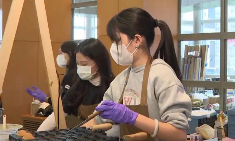 一群社工在攤販內吶喊,不論是帶起手作遊戲或是分享手工甜點,都在為新北市七個少年服務中心聯合成果展拉開盛大序幕;其中現場飄起陣陣雞蛋糕香,這是來自新北市少年培力園的創意擺攤,讓培力園的青少年們以「低成本高效率」的模式微型創業,並且從中建立自我成就感。