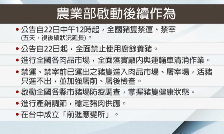 台中傳非洲豬瘟 農業部啟動應變措施防堵