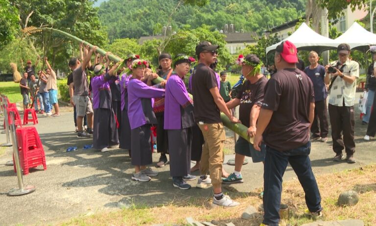 大武壠族夜祭前 婦女編花環、立向竹迎太祖