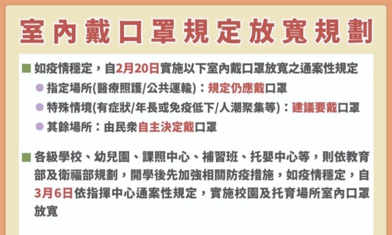 明起室內口罩令鬆綁 校園擬3/6起實施
