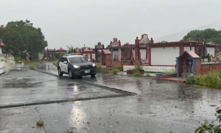 員警透過廣播宣導反賄選,不過地點似乎有點怪怪的。