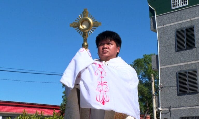 教文 生活 天主教 神父 遊行 鶴岡天主堂 花蓮祭天祈福活動 聖體遊行前進原鄉21教區 197 聖體遊行隊伍緩緩來到鶴岡天主堂,在地居民在道路兩側雙手合十,瞻仰基督聖體。 2022-12-09 12:47