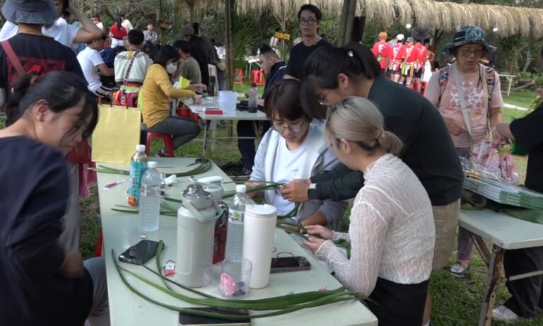 祭典活動 2024山谷音樂節 文化工寮 東華大學 花蓮秀林 遊花蓮聽歌謠玩手作 山谷音樂節活動精彩 36 民眾在族人的教學之下,體驗運用林投葉製作手工飾品的技術,大家都全神貫注地進行編織。 2024-11-22 19:39