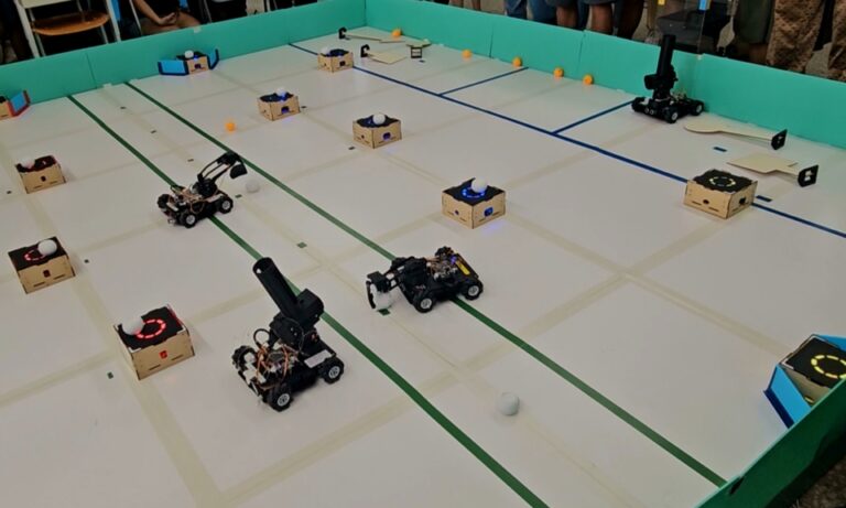 教文 2025台東智創機器人競賽 台東大學 大王國中 台東智創機器人競賽 吸引全縣75隊伍報名 37 學生透過手中的平板操控小型機械車,這是由台東縣政府和高雄扶輪社、台東大學,在台東大王國中舉辦「2025台東智創機器人競賽」,期盼透過競技,激發學子創新思維與團隊合作,提升台東科技教育能量。 2025-05-22 12:48