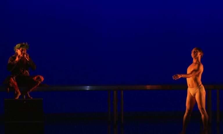 舞者隨著桑布伊的歌聲舞動,隨後攀附在圍舞的族人身上,台灣知名舞團布拉瑞揚舞團與金曲歌王桑布伊合作,為亞太表演藝術中心協會的年會帶來開幕表演,除了要讓國際友人親近台灣外也要透過帶動跳,為年會的到來,一同分享喜悅的心情。