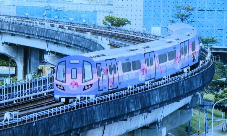 繽紛可愛的桃園捷運彩繪列車在20日正式啟動,這是觀光署與桃園市府、桃園大眾捷運公司合作設計的快樂桃子號列車,以桃園知名水果拉拉山水蜜桃作為元素,希望為此加強行銷台灣盛大的燈會活動。