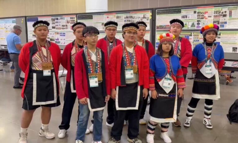 穿著族服,演唱鄒族高一生創作的歌曲,這一群來自嘉義鄒族的學生們,踏上美國,在AISES(美洲原住民科學與工程學會)年度大會上發表論文,與全球五百多位原住民科學工程領域人士,分享鄒族的科學智慧。