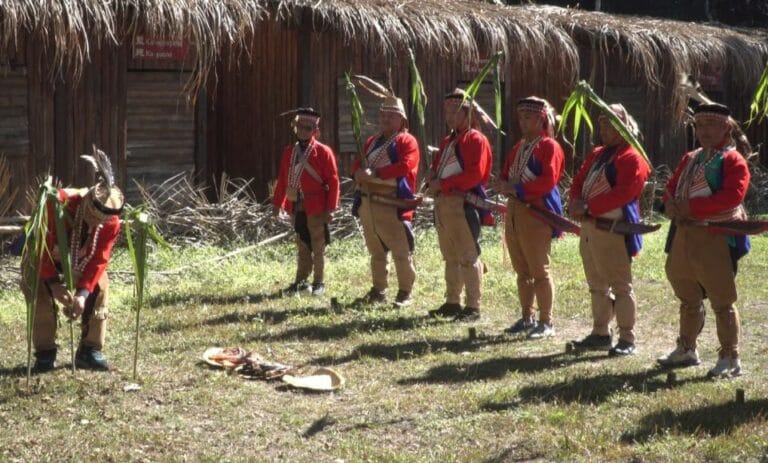 原鄉 生活 Cakuʉrʉ 儀式 六都 卡那卡那富 原鄉 聚會所 重建那瑪夏鄉「卡那卡那富Cakʉrʉ男子聚會所」 族人齊聚祭祖告知 140 族人準備肉、酒、年糕,請示祖靈,並用芒草打上結,標記出Cakʉrʉ重建位置。 2021-12-15 13:54