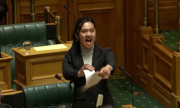 國際 Haka Hana-Rawhiti Maipi-Clarke 懷唐伊條約 毛利人 紐西蘭 不滿權利遭限縮 紐國毛利議員撕毀新法案 666 撕毀法案,毛利黨議員Hana-Rawhiti Maipi-Clarke以跳Haka表達對新法案的強烈反對。 2024-11-17 20:08
