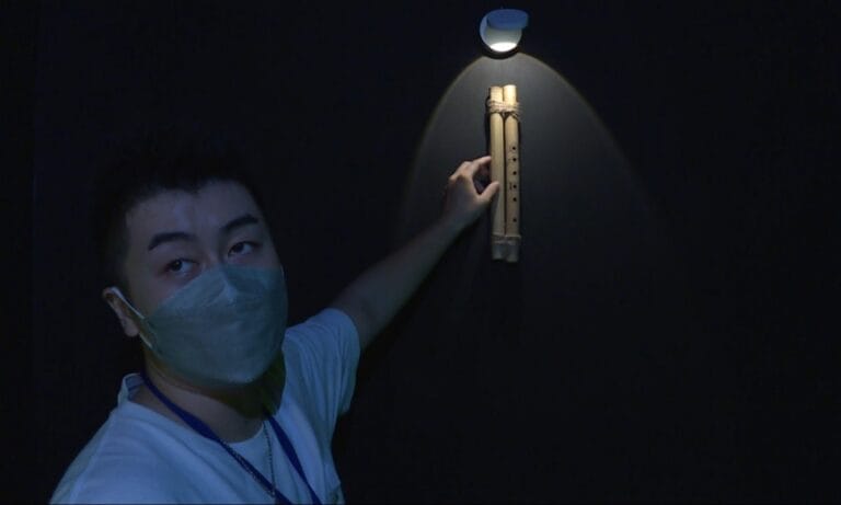 原鄉 教文 pupuzu火 原資中心 台科大 鄒族成果展 《pupuzu火》 台科大原資中心辦鄒族成果展 74 台科大學生利用科技專業,結合傳統鼻笛,以紅外線光感觸碰方式,再透過程式模擬出鼻笛發出的音樂,並設計成暗房,讓使用者以沉浸式感受,體驗鼻笛發出聲音的傳遞跟震動。 2022-09-15 12:41
