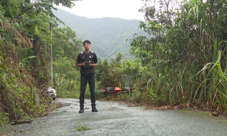 無人機螺旋槳快速轉動,準備執行拍攝任務。