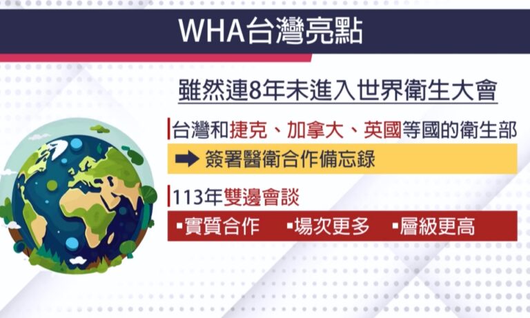 總統 賴清德:「國際社會對台灣的支持也一年比一年強勁,今年WHA共有26個會員國以及觀察員身分的歐盟代表,直接或間接支持台灣參與WHA。